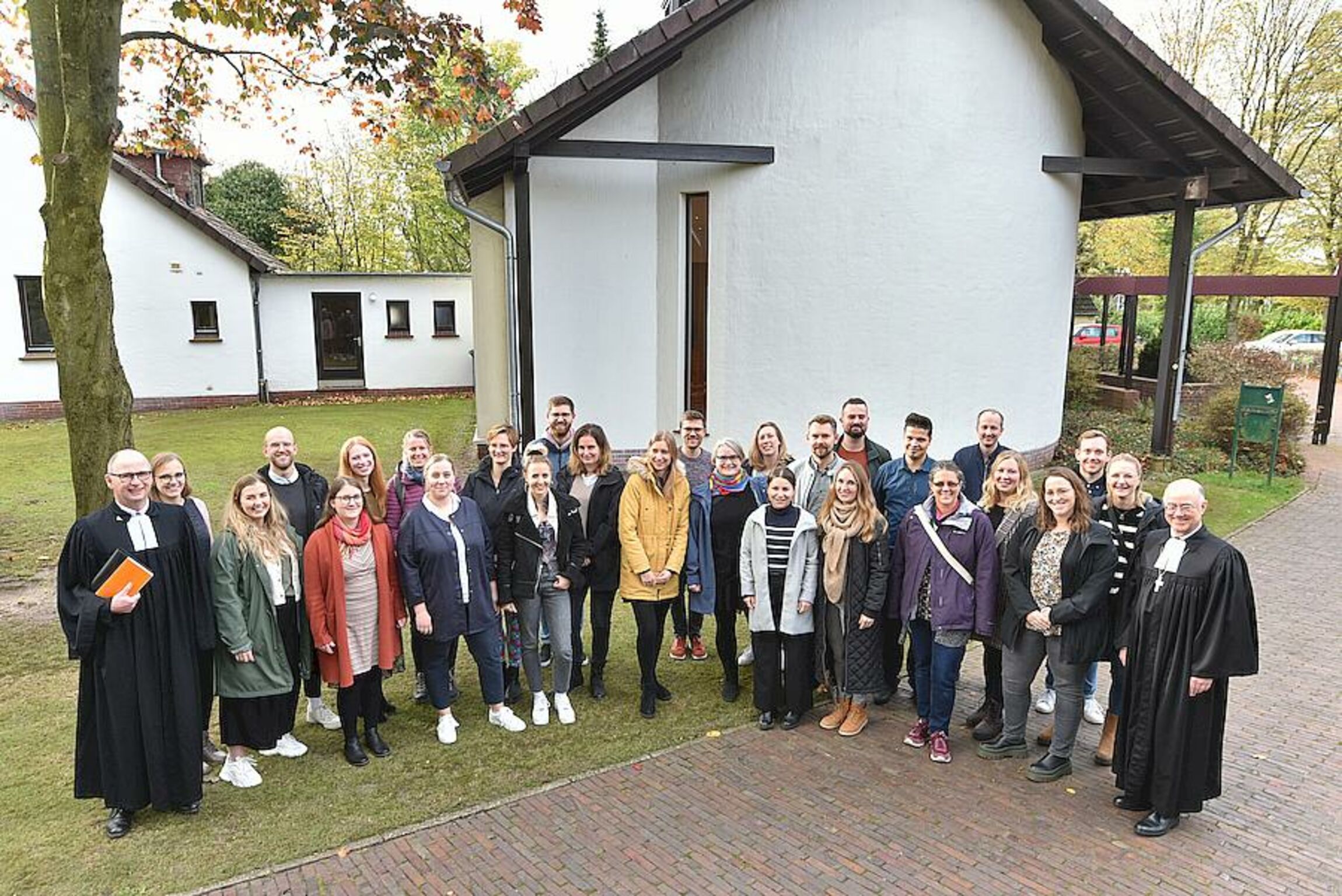 Im Vorfeld hatten die Religionslehrkräfte aus dem Einzugsgebiet der Konföderation evangelischer Kirchen in Niedersachsen an einer dreitägigen Vokationstagung zum Thema „Leben, Sterben, Tod“ im Ev. Bildungshaus in Rastede teilgenommen. Als Referentinnen waren dabei: Pfarrer Fritz Pinne, Julia Villbrandt-Firneisen, Lehrkraft an den Berufsbildenden Schulen des Landkreises Wesermarsch und Manuela Ehrt, Lehrkraft an der OBS Bookholzberg für den Bereich Sekundarstufe 1 sowie André Medeke und Henrike Freels von der Medienstelle der Ev.-Luth. Kirche in Oldenburg. Die Tagungsteilnehmenden haben den Gottesdienst musikalisch zusammen mit dem Musiker Steffen Schöps vorbereitet, der den Gottesdienst auch musikalisch begleitet hat. Zu den 27 Religionslehrkräften aus ganz Niedersachsen gehörten Lehrkräfte aus allen Schulformen: Förderschulen, Grundschulen, Oberschulen, Gymnasien und Berufsbildende Schulen.