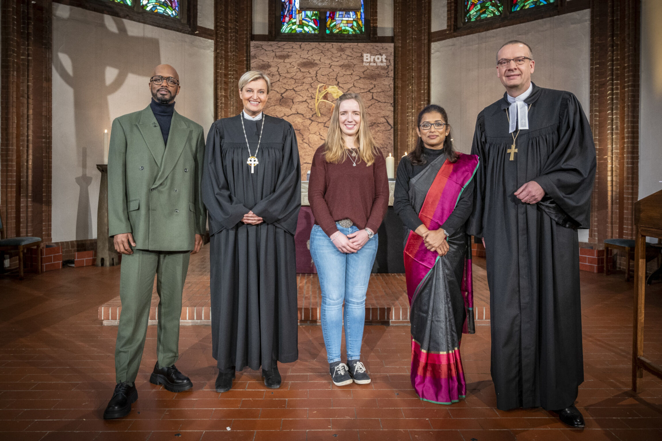 Am Vorabend hatte Moderatorin Annie Heger durch den Festabend geführt und zahlreiche Prominente begrüßt, wie die Präsidentin des Niedersächsischen Landtages, Hanna Naber, die ein Grußwort hielt, Dr. Kira Vinke, Leiterin des Zentrums für Klima und Außenpolitik bei der Deutschen Gesellschaft für Auswärtige Politik oder Schauspieler und Moderator Yared Dibaba. Ein Highlight des Abends und des Gottesdienstes war der Bericht von Juliate Malakar, der Direktorin der Christian Commission for Development in Bangladesh (CCDB), einer Partnerorganisation von Brot für die Welt, sowie der Projektfilm, der kreative Lösungen im Kampf gegen Bedrohungen durch den Klimawandel zeigt. Aber auch der Poetry Slam von Stella Wolke sowie die Global Music Player Allstars waren beeindruckend.