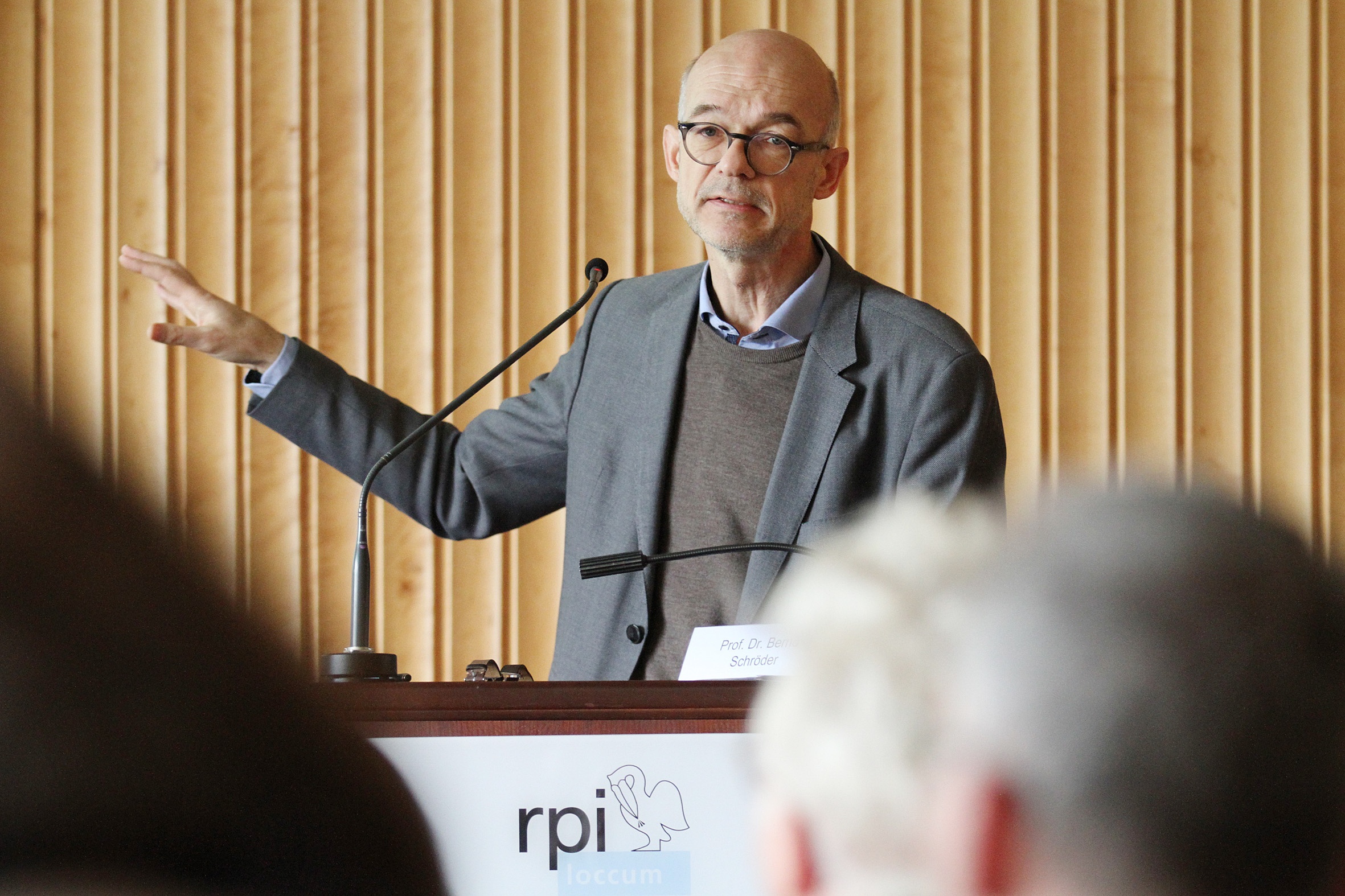 Seine Ergebnisse präsentierte Schröder bei der „Loccumer Konferenz für Pastor*innen und Diakon*innen mit einem Schulauftrag für Religionsunterricht“ im Religionspädagogischen Institut Loccum (RPI). Der Wunsch ist das eine, die Wirklichkeit nicht unbedingt das andere. Denn an 60 Prozent der niedersächsischen Schulen wird laut einer aktuellen Studie, an der Schröder beteiligt war, Religion (auch) im Klassenverband unterrichtet. „Für alle, die das Grundgesetz im Blick haben, ist das ein beunruhigender Befund“, sagte der Professor mit Schwerpunkt Religionspädagogik an der Theologischen Fakultät der Georg-August-Universität Göttingen. „Ich bin nicht die Schulaufsicht, aber an vielen Schulen wird Religionsunterricht in einer Form erteilt, die rechtlich nicht vorgesehen ist.“