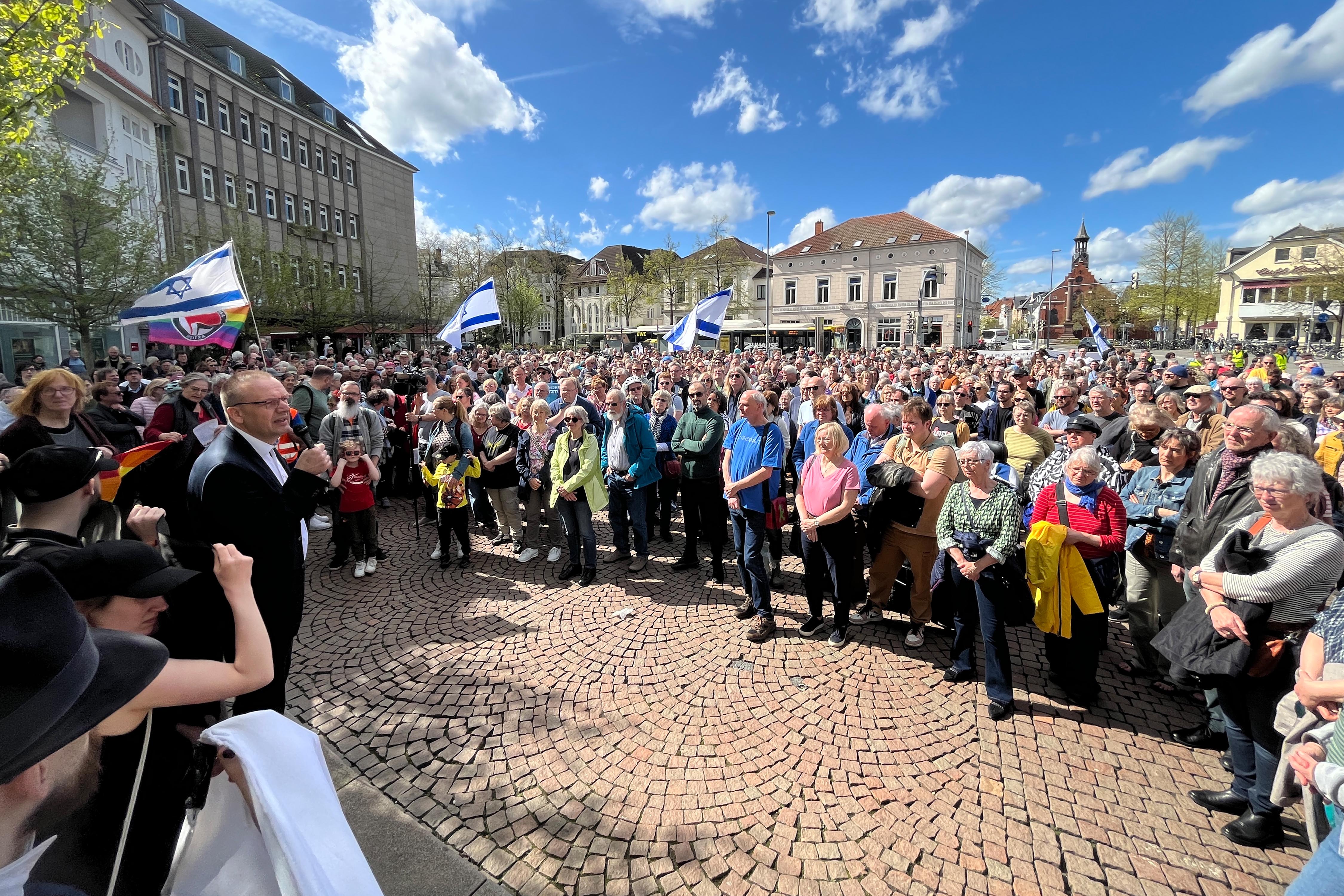 Oldenburg. Nach dem Brandanschlag auf die Synagoge in Oldenburg haben am Sonntagmittag, 7. April, nach Polizeiangaben mehr als 500 Menschen, nach Schätzungen der Organisatoren sogar 700 Menschen in der Innenstadt ihre Solidarität mit der jüdischen Gemeinde demonstriert. Die Vorsitzende der jüdischen Gemeinde, Claire Schaub-Moore, dankte für die „überwältigende Solidarität“, die der Gemeinde Stärke verleihe. „Diese Stärke ist viel größer als das, was vor unserer Synagoge passiert ist.“