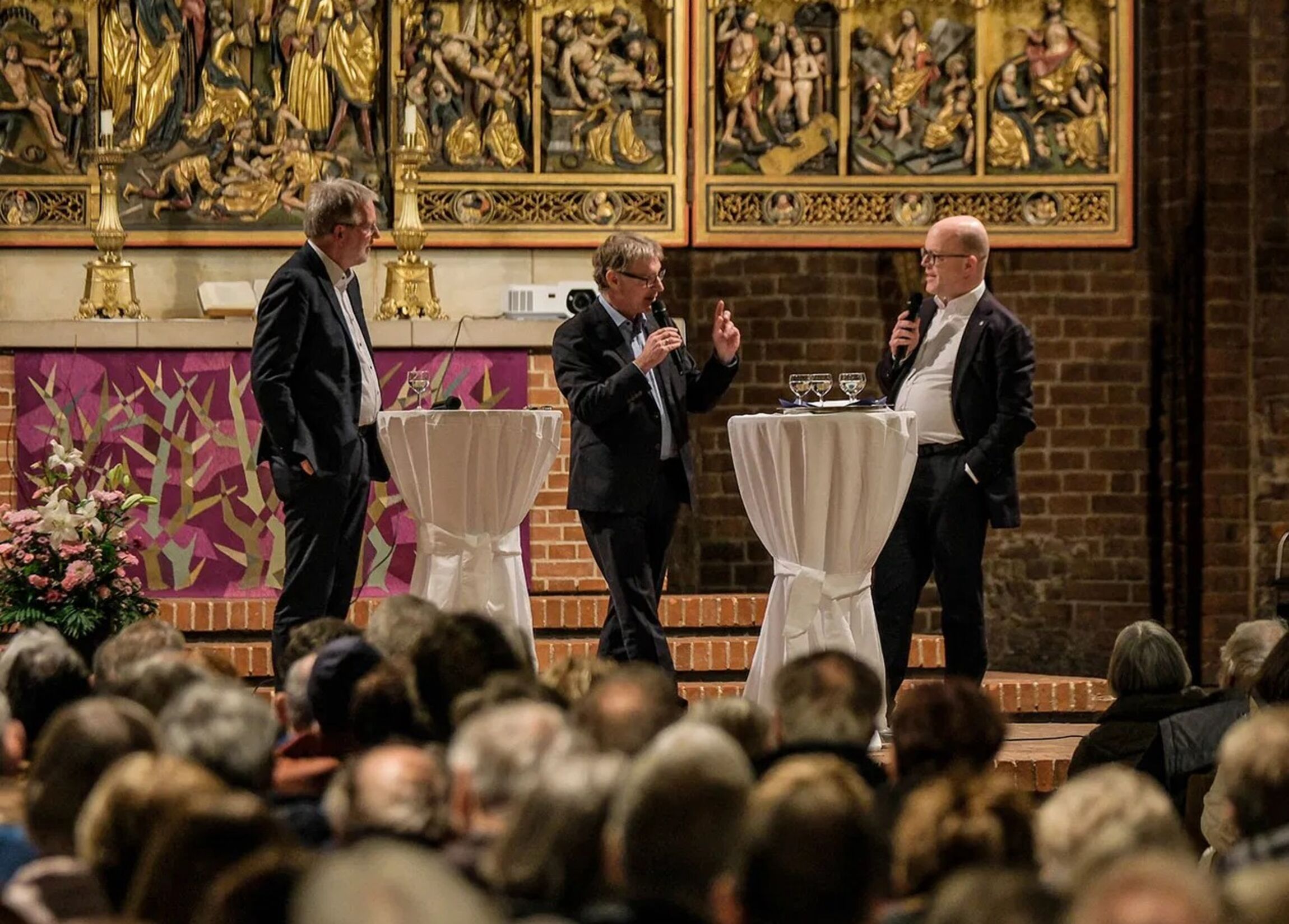 In der vollbesetzten Marktkirche stellte Henze vor rund 500 Besucherinnen und Besuchern sein neues Buch „Mit Gott gegen die Demokratie“ vor, in dem er die Wechselwirkungen zwischen Trump, seiner Bewegung „Make America Great Again“ („Macht Amerika wieder groß“, Maga) und der religiösen Rechten in den USA analysiert. Danach erschien Trump den rechtskonservativen Christen zunächst als das geringere Übel gegenüber anderen, sagte der WDR-Journalist.