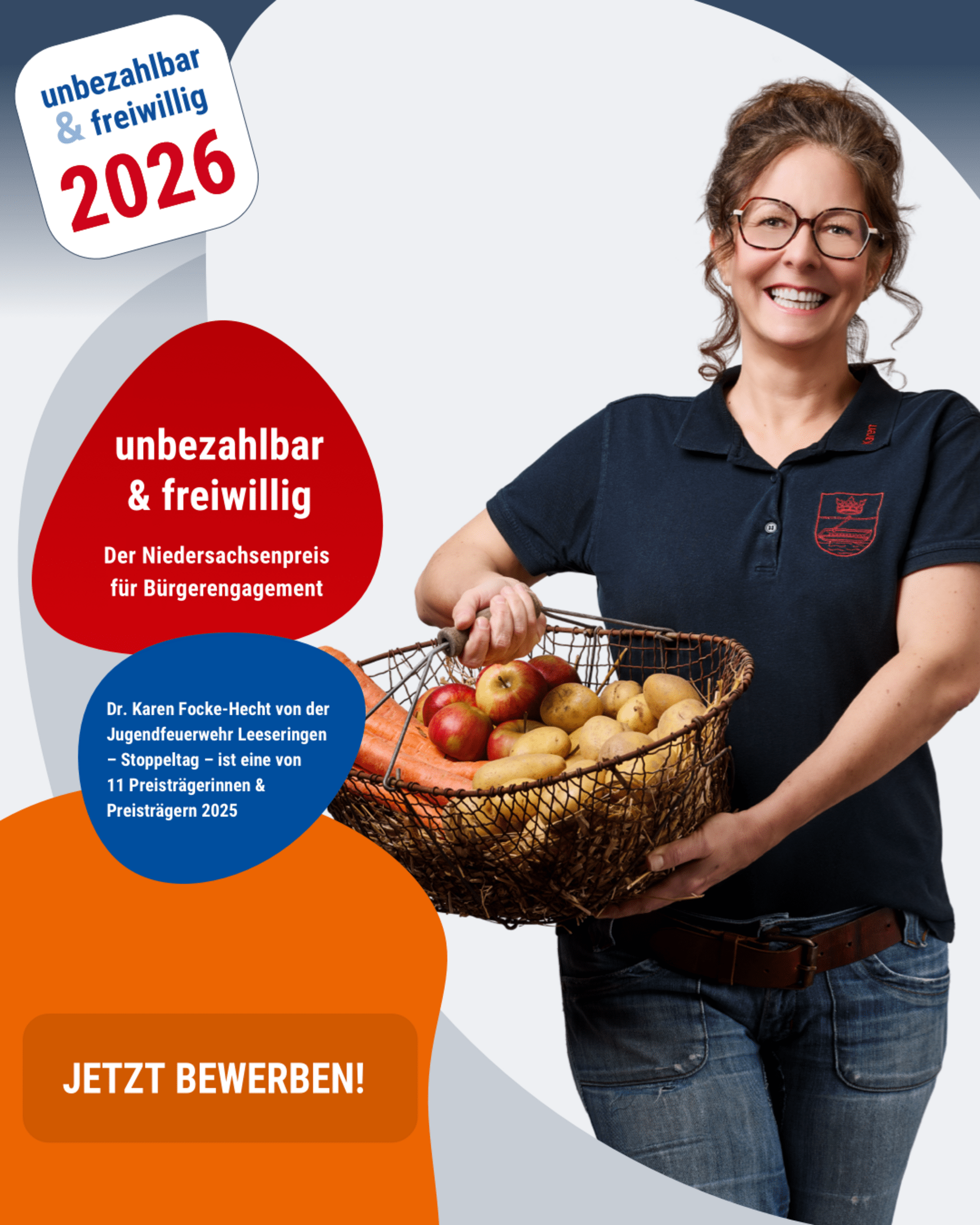 Die Bewerbung sollte bevorzugt online über die Website www.unbezahlbarundfreiwillig.de eingereicht werden. Alternativ ist eine schriftliche Einsendung an die Niedersächsische Staatskanzlei, „unbezahlbar & freiwillig“, Planckstraße 2, 30169 Hannover möglich. Einsendeschluss ist der 15. Juli 2026.