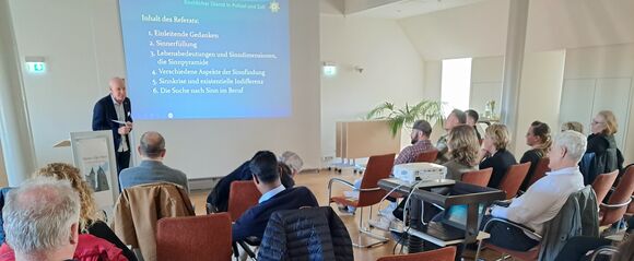 Pfarrer A. Kullik beim KDPZ-Seminartag: „Sinn ergibt sich in der jeweiligen Lebenssituation – Sinn kann nicht gemacht werden.“ Foto: KDPZ