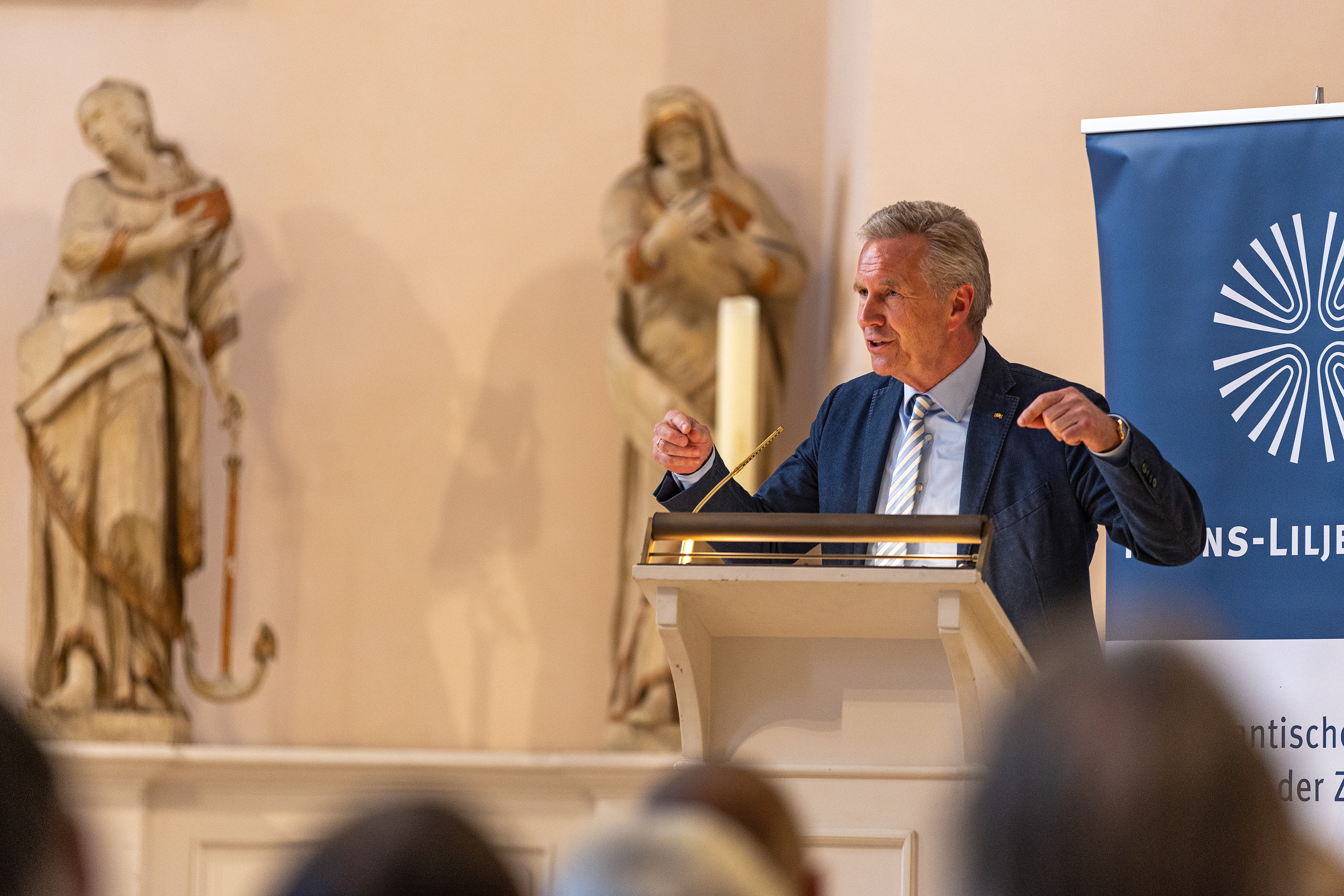 Wulff rief dazu auf, politischen Parteien beizutreten und die Arbeit von Politikerinnen und Politikern wertzuschätzen. Dazu sei es wichtig, andere Meinungen auszuhalten, wirklich zu verstehen und zu vertrauen. „Die Demokratie ist angewiesen auf Demokratinnen und Demokraten“, sagte er. Die Weimarer Republik sei als erster Versuch einer deutschen Demokratie schon nach 14 Jahren gescheitert. Die Bundesrepublik als zweiter Versuch „darf niemals scheitern“, sagte er.
