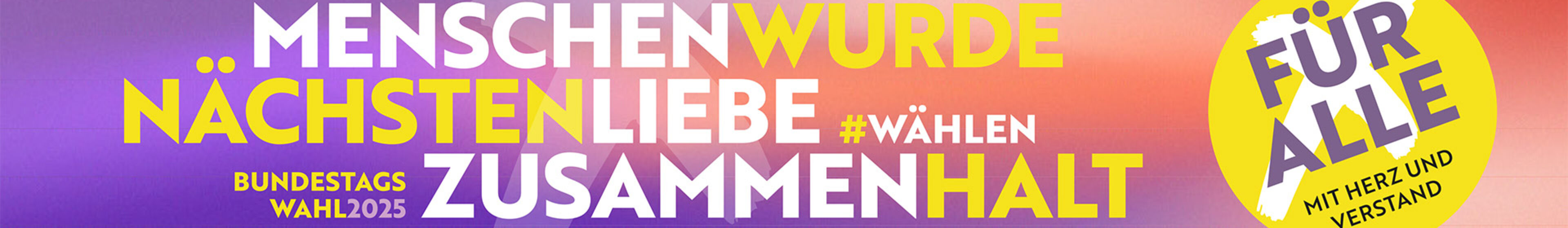 Mit einer Kampagne zur Bundestagswahl wollen zahlreiche evangelische Kirchen und katholische Bistümer die christlichen und gesellschaftlichen Werte „Menschenwürde“, „Nächstenliebe“ und „Zusammenhalt“ in den Mittelpunkt der Diskussion rücken. Unter dem Motto „Für alle. Mit Herz und Verstand“ rufen sie die Bevölkerung auf, durch aktive Teilnahme an den Wahlen die Demokratie zu stärken.